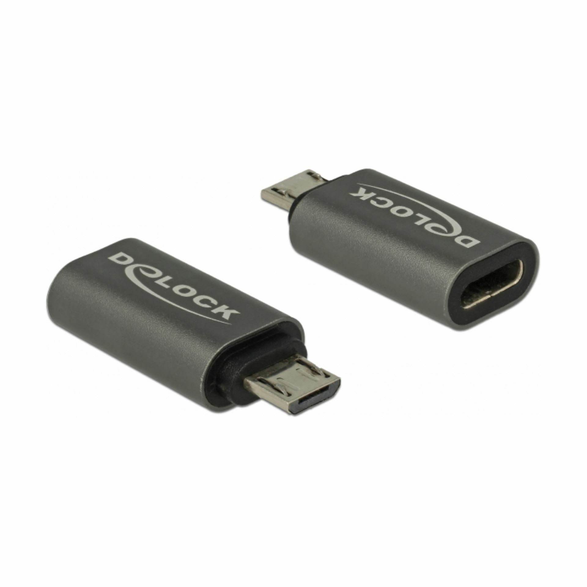 Delock adapter omogoča povezavo naprave z USB mikro-B vmesnikom (npr. pametni telefon) na računalnik z uporabo USB tip-C kabla. Adapter pretvori USB mikro-B ženski vmesnik v USB tip-C ženski vmesnik.