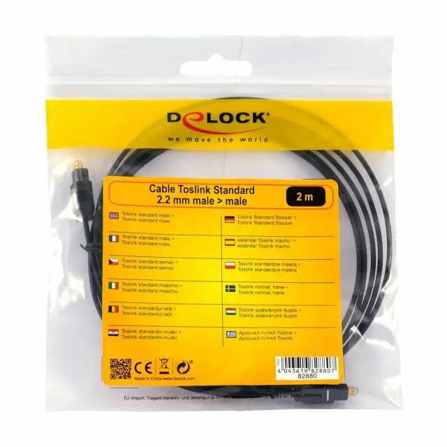 Delock Toslink kabel za priključitev na standardni Toslink priključek in podpira optični prenos avdio signalov. Kabel je namenjen povezovanju različnih naprav, npr. Blu-Ray predvajalnikov z ojačevalcem ali televizijo.