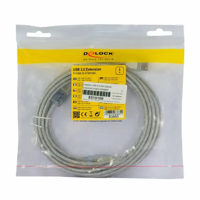 Delock USB 2.0 podaljšek namenjen podaljševanju obstoječih USB povezav.