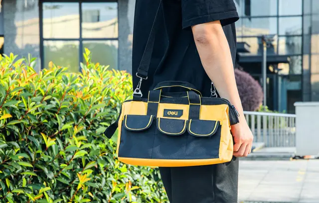 Potrebujete torbo za orodje, ki združuje funkcionalnost, zmogljivost in izjemno vzdržljivost? Deli Tools EDL430013 je samo za vas! Ima veliko žepov in predelkov, kamor lahko pospravite različno opremo in dodatke. Poleg tega je izdelan iz materiala, ki je odporen na obrabo in je odporen na predrtje, posebne vgrajene jeklene palice pa ohranjajo konstrukcijo stabilno.