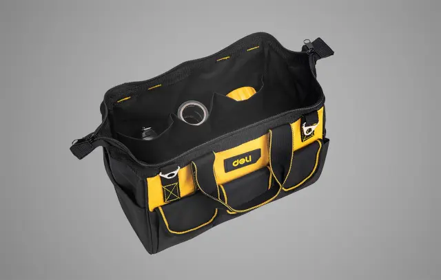 Potrebujete torbo za orodje, ki združuje funkcionalnost, zmogljivost in izjemno vzdržljivost? Ima veliko žepov in predelkov, kamor lahko pospravite različno opremo in dodatke. Poleg tega je izdelan iz materiala, ki je odporen na obrabo in je odporen na predrtje, posebne vgrajene jeklene palice pa ohranjajo konstrukcijo stabilno.