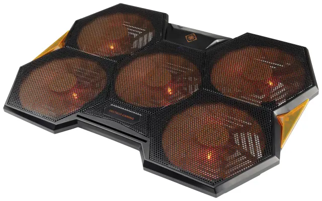 Z zunanjim hladilnikom za prenosni računalnik vaša oprema vedno ohranja potrebno hladnost za najboljše delovanje, tudi v vročih razmerah. Hladilnik z LED osvetlitvijo ima skupno 5 ventilatorjev, ki jih je mogoče neodvisno preklapljati v 2 skupini in se vrteti s hitrostjo do 1300 vrt/min ter tako zagotavlja idealno regulacijo temperature za vaš igralni prenosnik.Napajanje se napaja preko USB. Na hladilniku je na voljo dodatna vrata USB s funkcijo loop-through, tu lahko priključite zunanje naprave, kot je miška ali krmilnik. Poleg tega naslon za zapestje, vgrajen v hladilnik prenosnika, omogoča sproščeno igralno izkušnjo.Besedilo je strojno prevedeno.