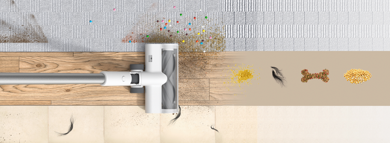 Ne glede na to, ali odstranjujete madeže iz preproge, parketa ali ploščic, bodo z Dreame T10 sesalnikom vaša tla čista kot še nikoli. Vsestranski sesalnik vam s posebej oblikovano krtačo v obliki črke V omogoča, da odstranite madeže z vseh površin.