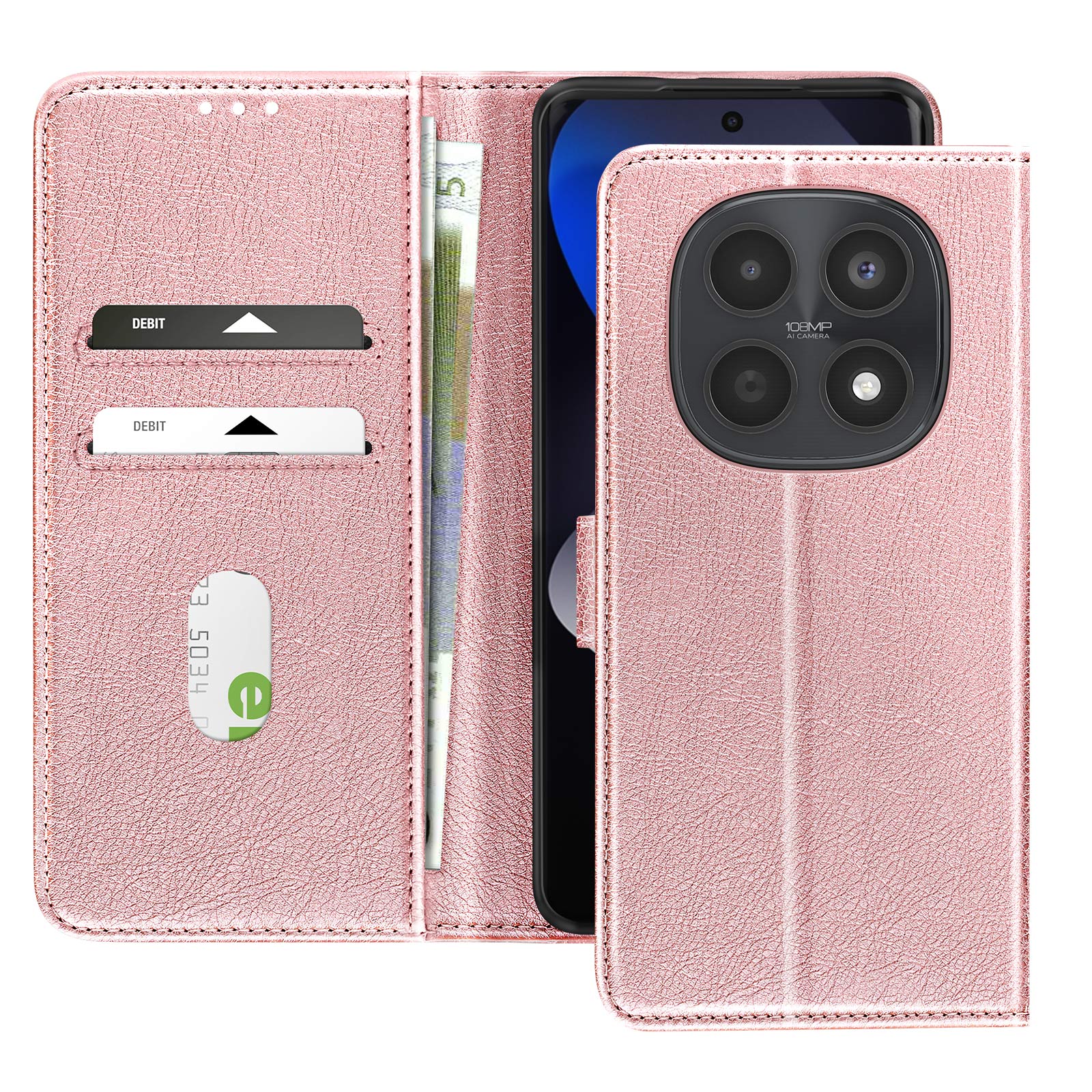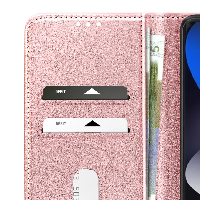 Ta roza denarnica za telefon Xiaomi Redmi Note 15 5G/4G ima zrnato prevleko Chesterfield in urejen, strukturiran videz.. Notranji zavihek ima dve ločeni reži za kartice in stranski predal za bankovce ali potrdila.. Mehka silikonska notranja lupina drži pametni telefon trdno na mestu in absorbira vsakodnevne udarce.. Zložljiv poklopec se spremeni v stabilno vodoravno oporo za pregledovanje vsebine ali prostoročno klicanje..