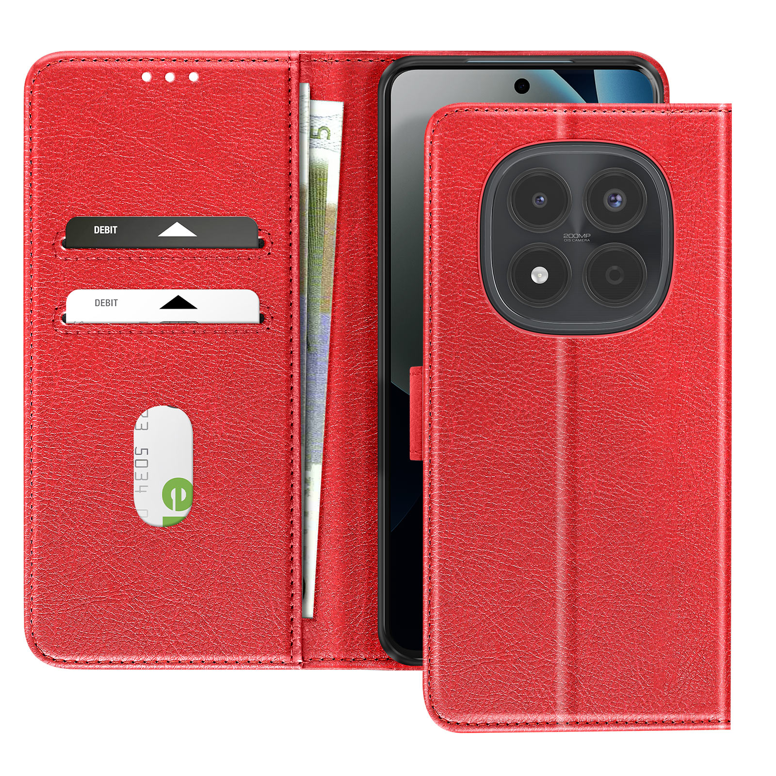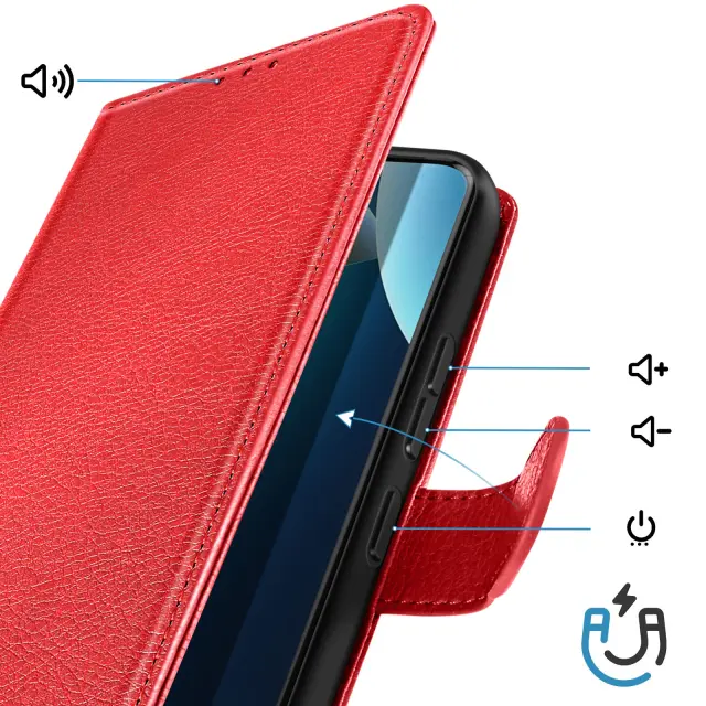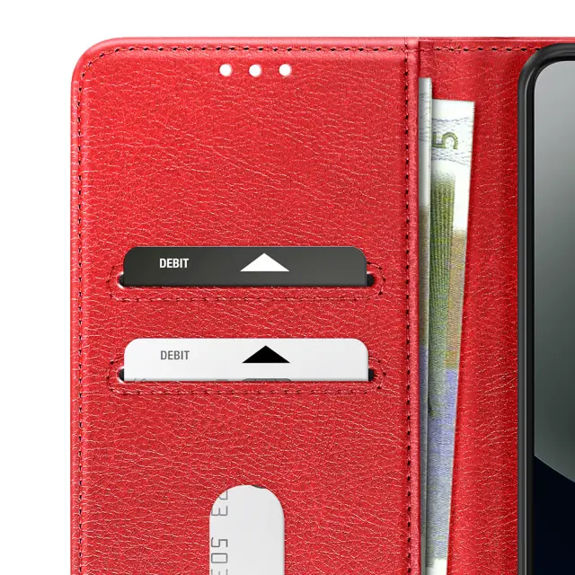 Ta rdeči denarnica za Xiaomi Redmi Note 15 Pro 4G ima zrnat Chesterfieldov zaključek in urejen, strukturiran videz.. Notranji zavihek ima dve ločeni reži za kartice in stranski predal za bankovce ali potrdila.. Mehka silikonska notranja lupina drži pametni telefon trdno na mestu in absorbira vsakodnevne udarce.. Zložljiv poklopec se spremeni v stabilno vodoravno oporo za pregledovanje vsebine ali prostoročno klicanje..