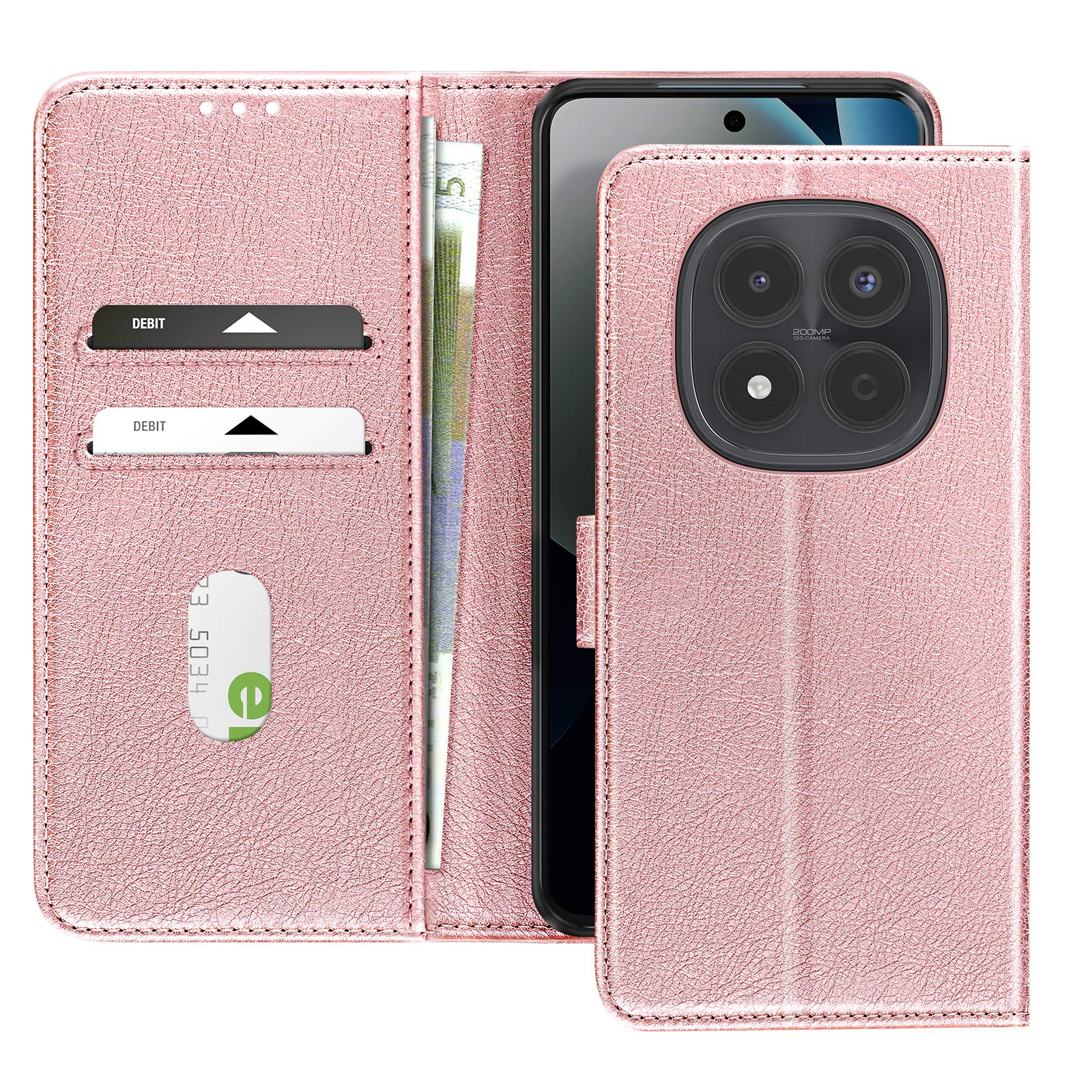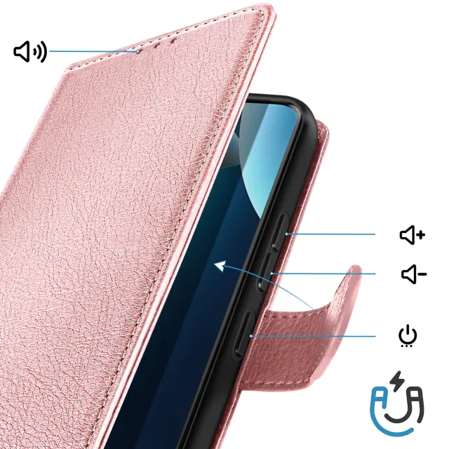 Ta roza denarnica za telefon Xiaomi Redmi Note 15 Pro 4G ima zrnato prevleko Chesterfield in urejen, strukturiran videz.. Notranji zavihek ima dve ločeni reži za kartice in stranski predal za bankovce ali potrdila.. Mehka silikonska notranja lupina drži pametni telefon trdno na mestu in absorbira vsakodnevne udarce.. Zložljiv poklopec se spremeni v stabilno vodoravno oporo za pregledovanje vsebine ali prostoročno klicanje..