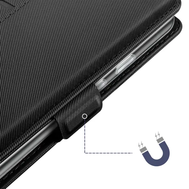 To ohišje zagotavlja popolno zaščito zaslona in hrbtne strani pred udarci in praskami. Večnamenski kovček z režami za kartice, notranjim ogledalom in vgrajenim nosilcem za videokamero. Magnetno zapiranje z dvojnim zavihkom za večjo varnost. Funkcija stojala za prostoročno gledanje vsebine.