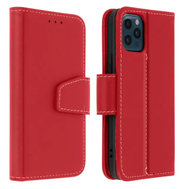 Denarnica etui za iPhone 12 Pro Max iz premium usnja s funkcijo stojala, Rdeča