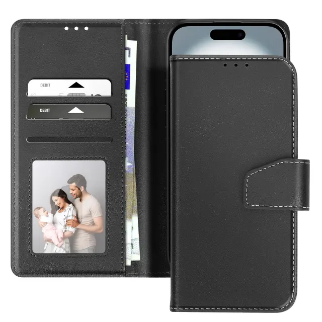 Ta črn denarniški ovitek za iPhone 16 je izdelan iz pravega polnozrnatega usnja, z natančnimi šivi in zglajenimi robovi za čist zaključek.. V notranjosti sta dve reži za kartice, prozorna reža za fotografijo potnega lista in stranski predal za bankovce.. Šivi v tonu poudarjajo trdnost zavihka in poudarjajo skrbno obdelavo usnja.. Klop na tečajih se zloži nazaj za stabilno video podporo pri gledanju ali prostoročnem klicanju.