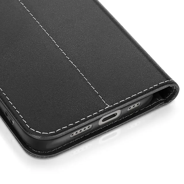 Ta črni denarnica za iPhone 16 Pro je izdelana iz pravega polnozrnatega usnja z ličnimi šivi in zglajenimi robovi za čist zaključek.. V notranjosti sta dve reži za kartice, prozorna reža za fotografijo potnega lista in stranski predal za bankovce.. Šivi v tonu poudarjajo trdnost zavihka in poudarjajo skrbno obdelavo usnja.. Klop na tečajih se zloži nazaj za stabilno video podporo pri gledanju ali prostoročnem klicanju.