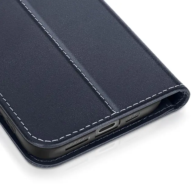 Polnočno modra denarnica za iPhone 17 je izdelana iz pravega polnozrnatega usnja z ličnimi šivi in zglajenimi robovi za čist zaključek.. V notranjosti sta dve reži za kartice, prozorna reža za fotografijo potnega lista in stranski predal za bankovce.. Šivi v tonu poudarjajo trdnost zavihka in poudarjajo skrbno obdelavo usnja.. Klop na tečajih se zloži nazaj za stabilno video podporo pri gledanju ali prostoročnem klicanju.