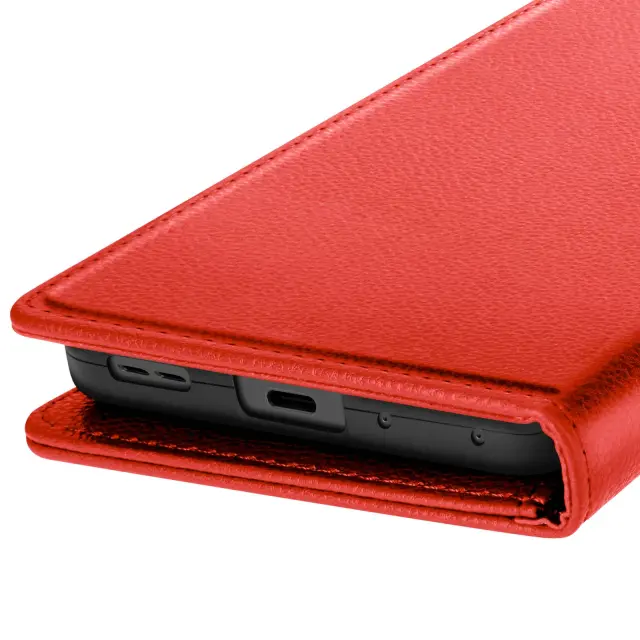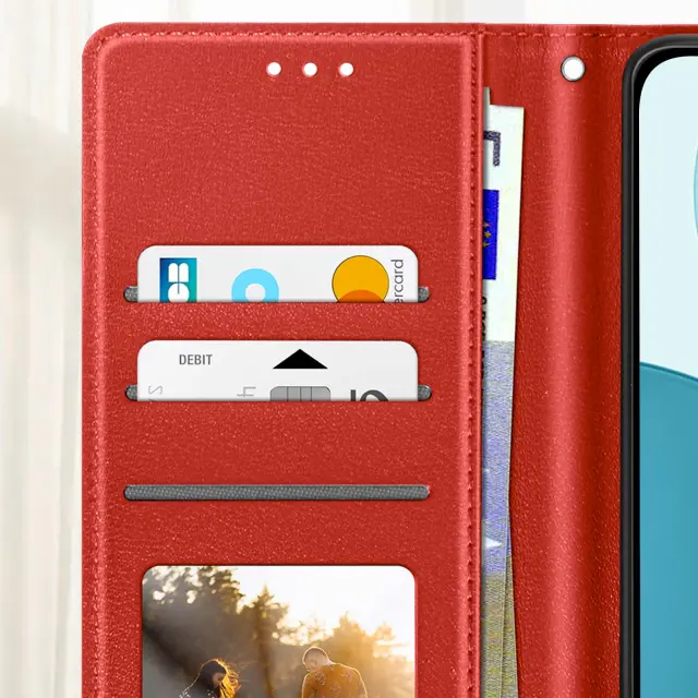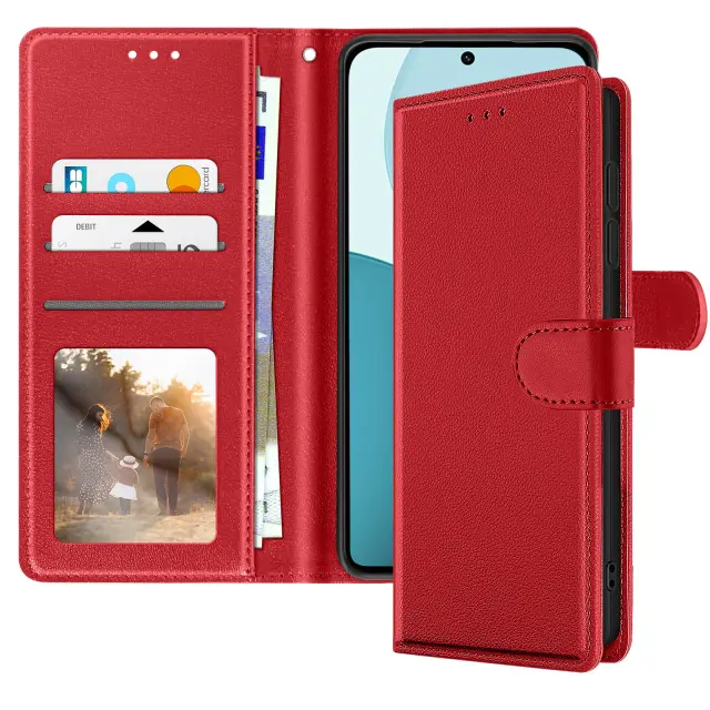 Eleganten in funkcionalen kovček iz rdečega usnja, združljiv z Oppo Reno 14, 14F in 14 FS. Vgrajeni predali za kartice in stranski žep za bankovce. Vgrajena funkcija za podporo videa za udobno gledanje vsebine. Zanesljivo magnetno zapiranje ter mehka notranja lupina, odporna na praske in udarce.