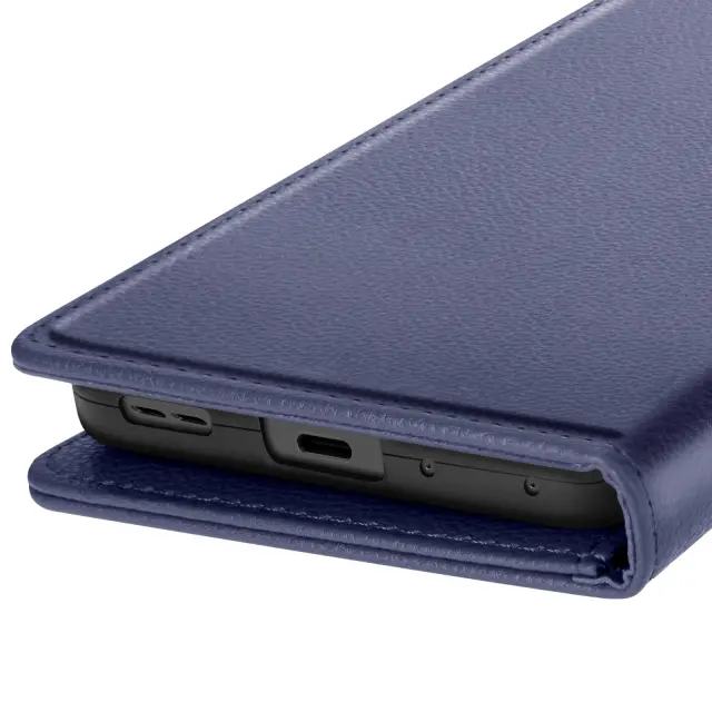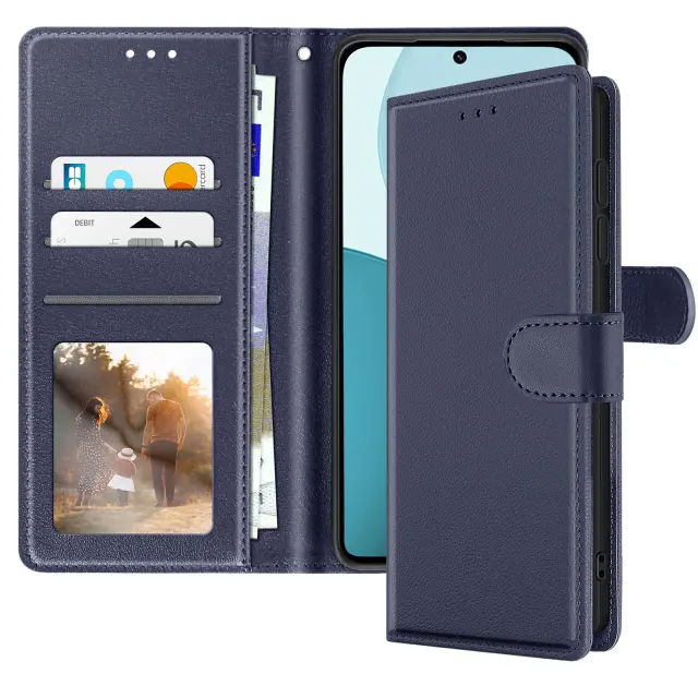 Eleganten in funkcionalen polnočno modri usnjen kovček, združljiv z Oppo Reno 14, 14F in 14 FS. Vgrajeni predali za kartice in stranski žep za bankovce. Vgrajena funkcija za podporo videa za udobno gledanje vsebine. Zanesljivo magnetno zapiranje ter mehka notranja lupina, odporna na praske in udarce.