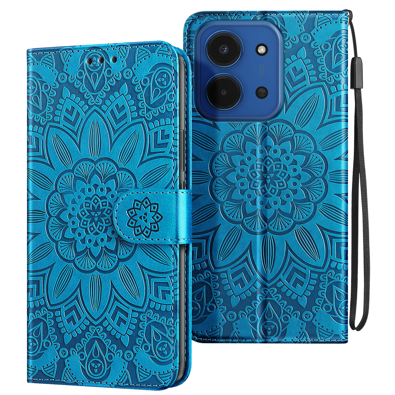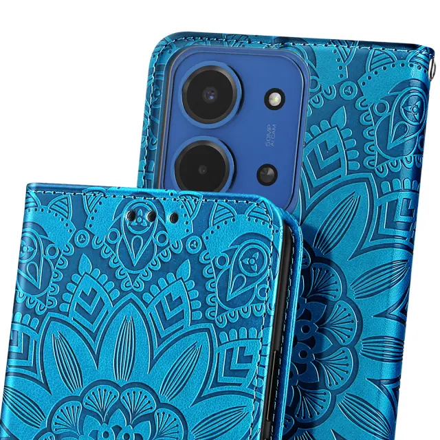 Denarnica etui za Redmi 15C z motivom mandale in držalom za kartice, Modra