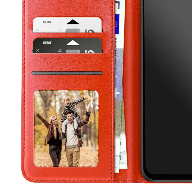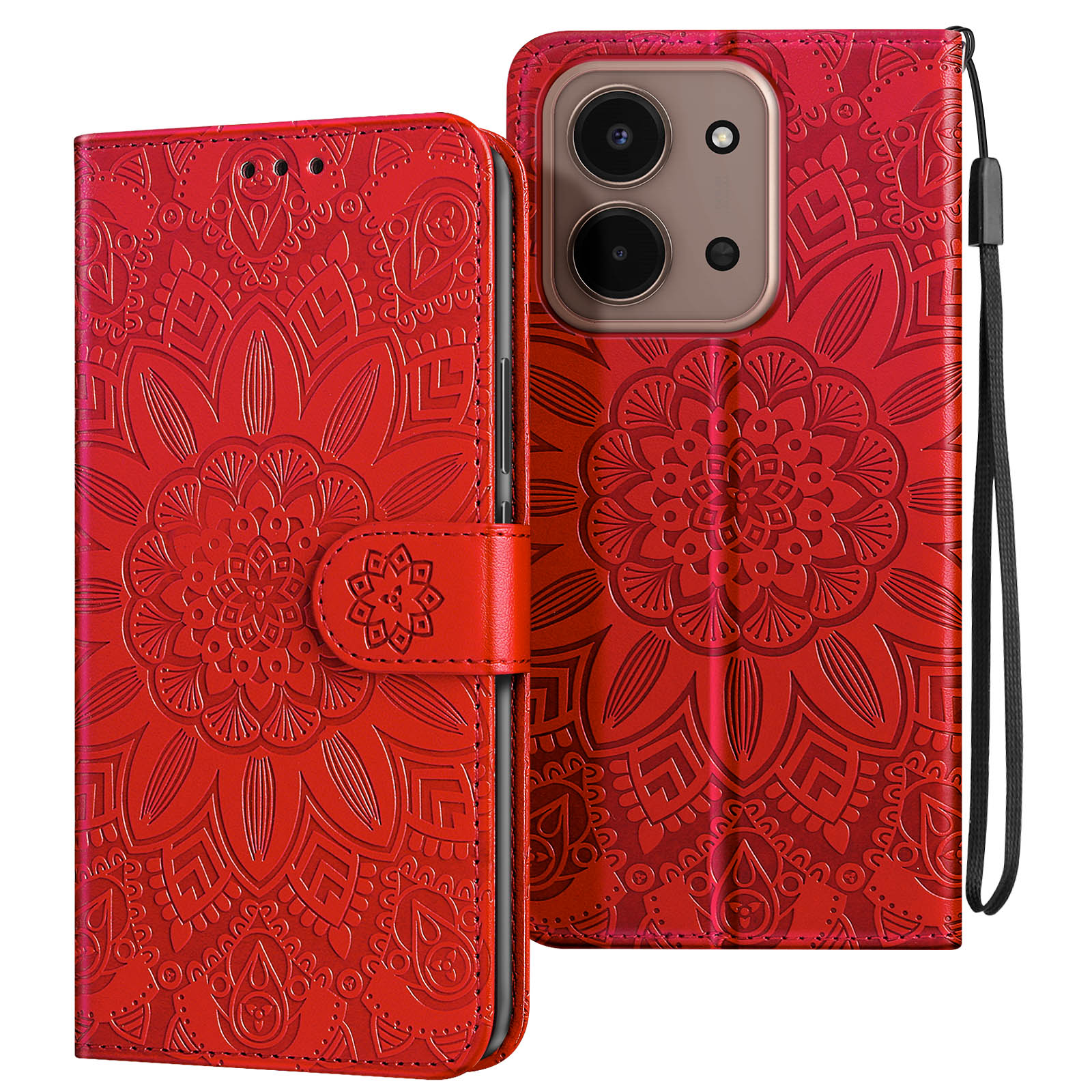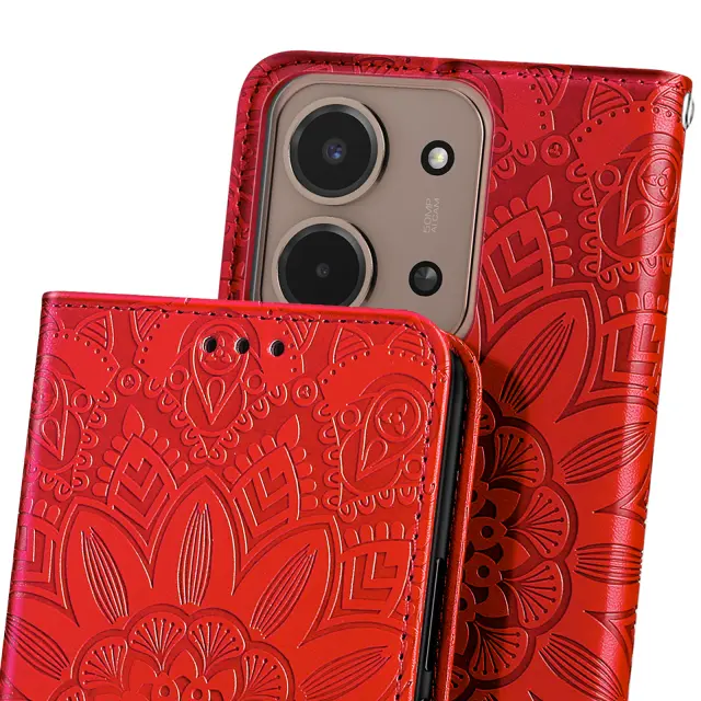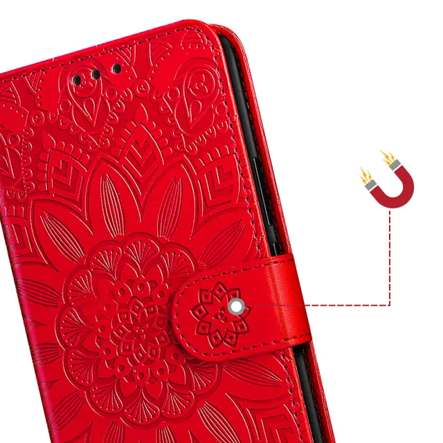 Vzorec mandale, vtisnjen na usnje, zagotavlja prefinjen videz in pametni telefon spremeni v modni dodatek.. Format denarnice s tremi režami za kartice in predalom za bankovce. Mehka silikonska notranja lupina, ki absorbira udarce, za učinkovito zaščito zaslona, vogalov in robov telefona. Vgrajen trak za roko in zložljiv nosilec za videoposnetek za trden oprijem z eno roko ali udobno gledanje brez uporabe rok.
