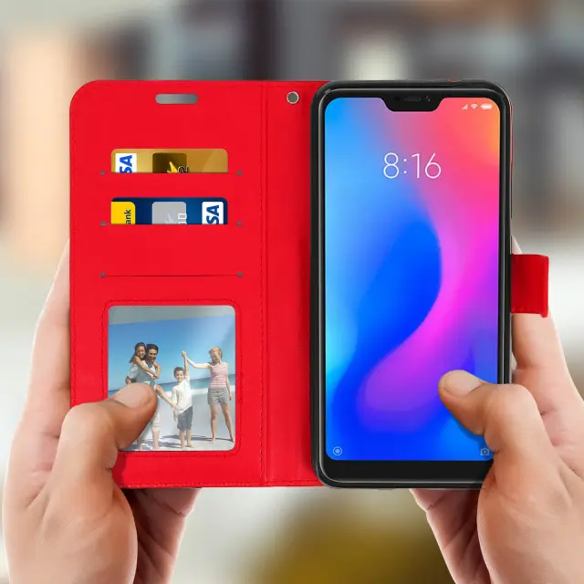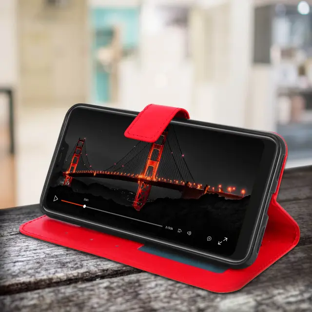 Denarnica Folio Case stojalo za video, serija Vintage - rdeca str. Xiaomi Mi A2