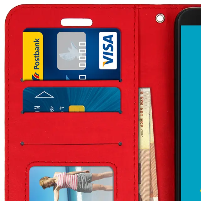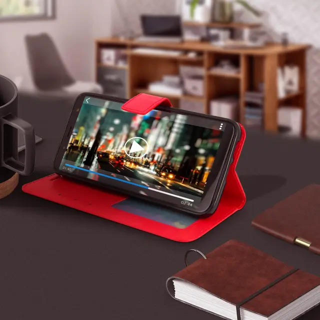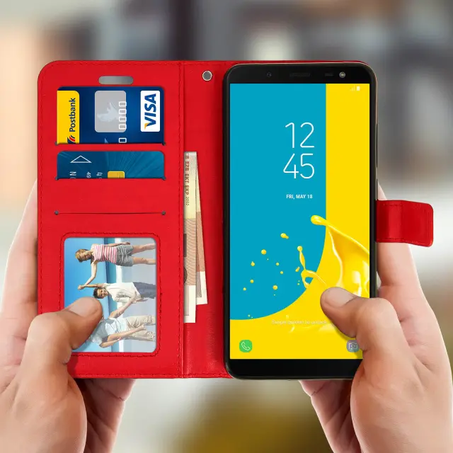 Denarnica Folio Case stojalo za video, serija Vintage - rdeca str. Samsung Galaxy J6