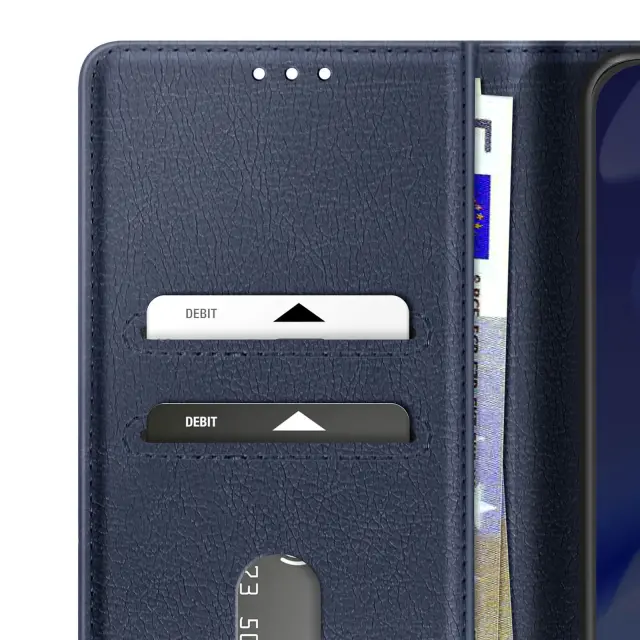 Polnočno modro denarnico za telefon Google Pixel 9a krasi Chesterfieldov zaključek z zrnato površino za trezen in prefinjen videz.. Na notranji strani zavihka sta dve navpični reži, namenjeni vstavljanju bančnih kartic, priponk ali potovalnih vozovnic.. Notranji stranski predal omogoča, da so zapiski in računi lepo poravnani, ne da bi ovirali magnetno zapiranje.. Trdna polikarbonatna lupina trdno obdaja vaš pametni telefon ter ščiti obrise in fotografski modul..