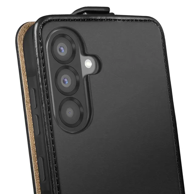 Ta etui je prevlečen z usnjenim učinkom za eleganten in trpežen videz.. Navpično odpiranje z varnim dvojnim magnetnim jezičkom. Vgrajeno držalo za kartice za večjo praktičnost v vsakdanjem življenju. Neposreden dostop do gumbov in priključkov Galaxy A56.