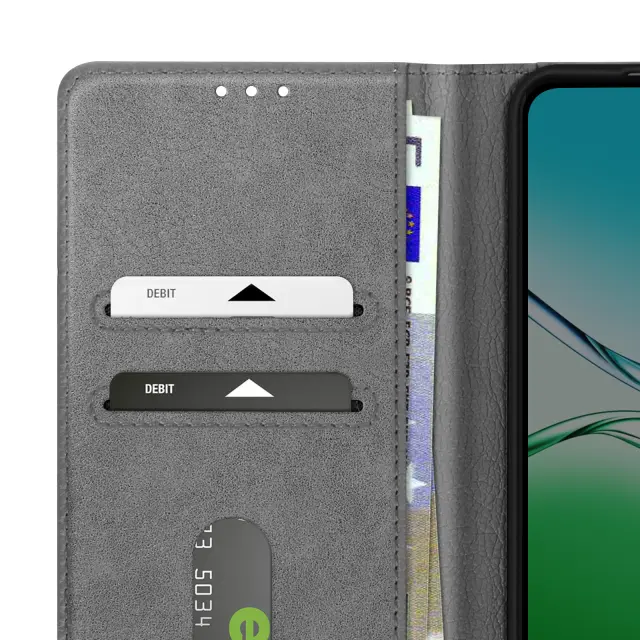 Popolna zaščita pred praskami, udarci in vsakodnevno obrabo za vaš Oppo A5. Vgrajeni predali za kartice in žep za zapiske ali potrdila. Funkcija video podpore za udobno gledanje večpredstavnostnih vsebin. Varno magnetno zapiranje in prost dostop do gumbov in vrat.