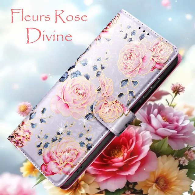 To ohišje ima vgrajeno držalo za videoposnetek za udobno uporabo. Prefinjen cvetlični vzorec s podrobnimi vrtnicami v zlatem reliefu. Notranji predali za kartice in zapiske. Magnetno zapiranje z varno zavihkom za pritiskanje čepov.
