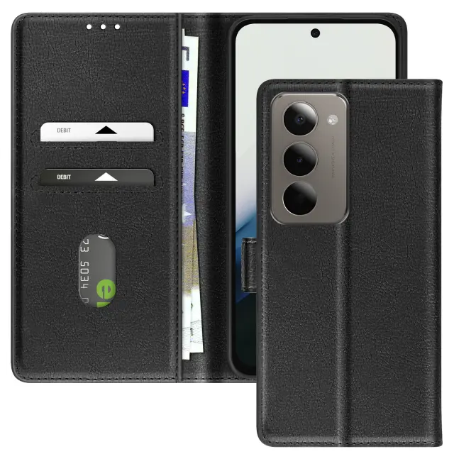 Ta črni denarnica za Xiaomi Redmi 15 5G ima Chesterfieldov zaključek z zrnato površino za trezen in prefinjen videz.. Na notranji strani zavihka sta dve navpični reži, namenjeni vstavljanju bančnih kartic, priponk ali potovalnih vozovnic.. Notranji stranski predal omogoča, da so zapiski in računi lepo poravnani, ne da bi ovirali magnetno zapiranje.. Trdna polikarbonatna lupina trdno obdaja vaš pametni telefon ter ščiti obrise in fotografski modul..