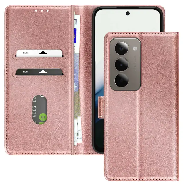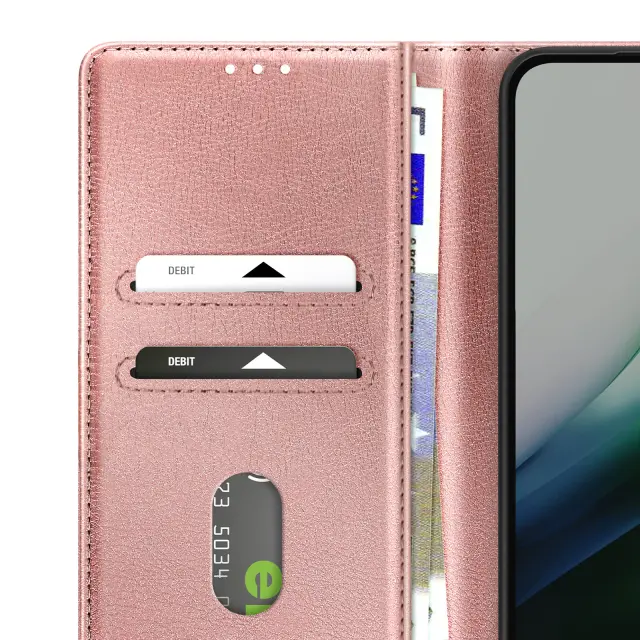 Rožnato denarnico za telefon Xiaomi Redmi 15 5G krasi Chesterfieldov zaključek z zrnato površino. Na notranji strani zavihka sta dve navpični reži, namenjeni vstavljanju bančnih kartic, priponk ali potovalnih vozovnic.. Notranji stranski predal omogoča, da so zapiski in računi lepo poravnani, ne da bi ovirali magnetno zapiranje.. Trdna polikarbonatna lupina trdno obdaja vaš pametni telefon ter ščiti obrise in fotografski modul..