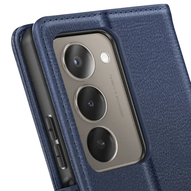 Polnočno modra denarnica za telefon Xiaomi Redmi 15 5G ima Chesterfieldov zaključek z zrnato površino. Na notranji strani zavihka sta dve reži za vstavljanje bančnih kartic, značk ali potovalnih vozovnic.. Notranji stranski predal omogoča, da so zapiski in računi lepo poravnani, ne da bi ovirali magnetno zapiranje.. Trdna polikarbonatna lupina trdno obdaja vaš pametni telefon ter ščiti obrise in fotografski modul..