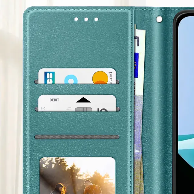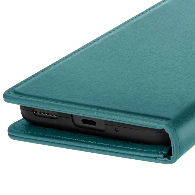 To ohišje ima vgrajeno video podporo za lažjo uporabo. Elegantna obdelava v sodobnem turkiznem usnju. Notranji predali za kartice in bankovce. Magnetno zapiranje z zanesljivim zavihkom.