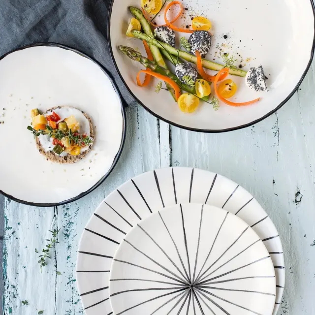 Mali oz. desertni krožnik Catalina premera 20 cm z izjemno črtasto dekoracijo je idealen za serviranje sadja in sladic. Postavite ga na mizo za posebne priložnosti, pa tudi za vsakodnevna kosila in večerje z veliko osebnostjo. Popoln je za zabave in samopostrežne aperitive, pa tudi catering in sprejeme, kjer se zahteva določen stil. Izdelan je iz lončene keramike Stoneware, ki je primerna za uporabo v mikrovalovni pečici in pomivanje v pomivalnem stroju. Krožnik je okrašen in oblikovan za samostojno uporabo ali v kombinaciji z ostalimi izdelki iz linije Catalina.