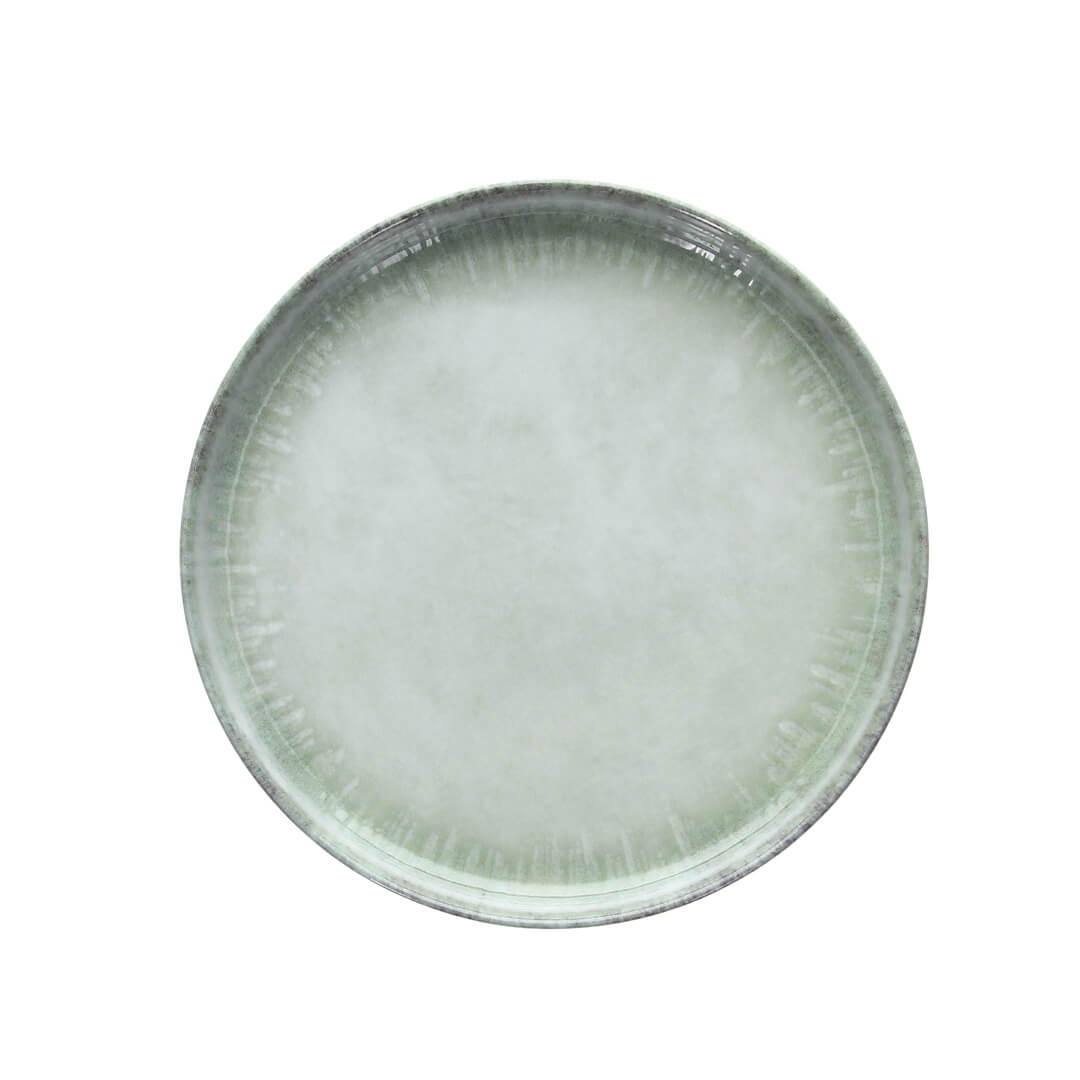 Mali krožnik z robom Origini Thesis, premera 21, je izdelan iz trpežnega porcelana, ki zagotavlja trpežnost, odpornost na praske ter dolgotrajno uporabo. Dvignjen rob omogoča boljšo kontrolo pri zajemanju hrane z vilicami ali žlico, preprečuje razlivanje tekočih živil in daje krožniku prefinjen videz. Odličen je za serviranje sadja, rižot, sladic in bogatih omak. Olivno zelena barva s svetlimi in temnimi odtenki daje krožniku rustikalen videz in občutek domačnosti. Kombinirajte ga še z ostalimi krožniki iz linije Origini in sami sestavite svojo garnituro. Idealen je tudi za gostince. Primeren je za uporabo v mikrovalovni pečici in pomivanje v pomivalnem stroju.
