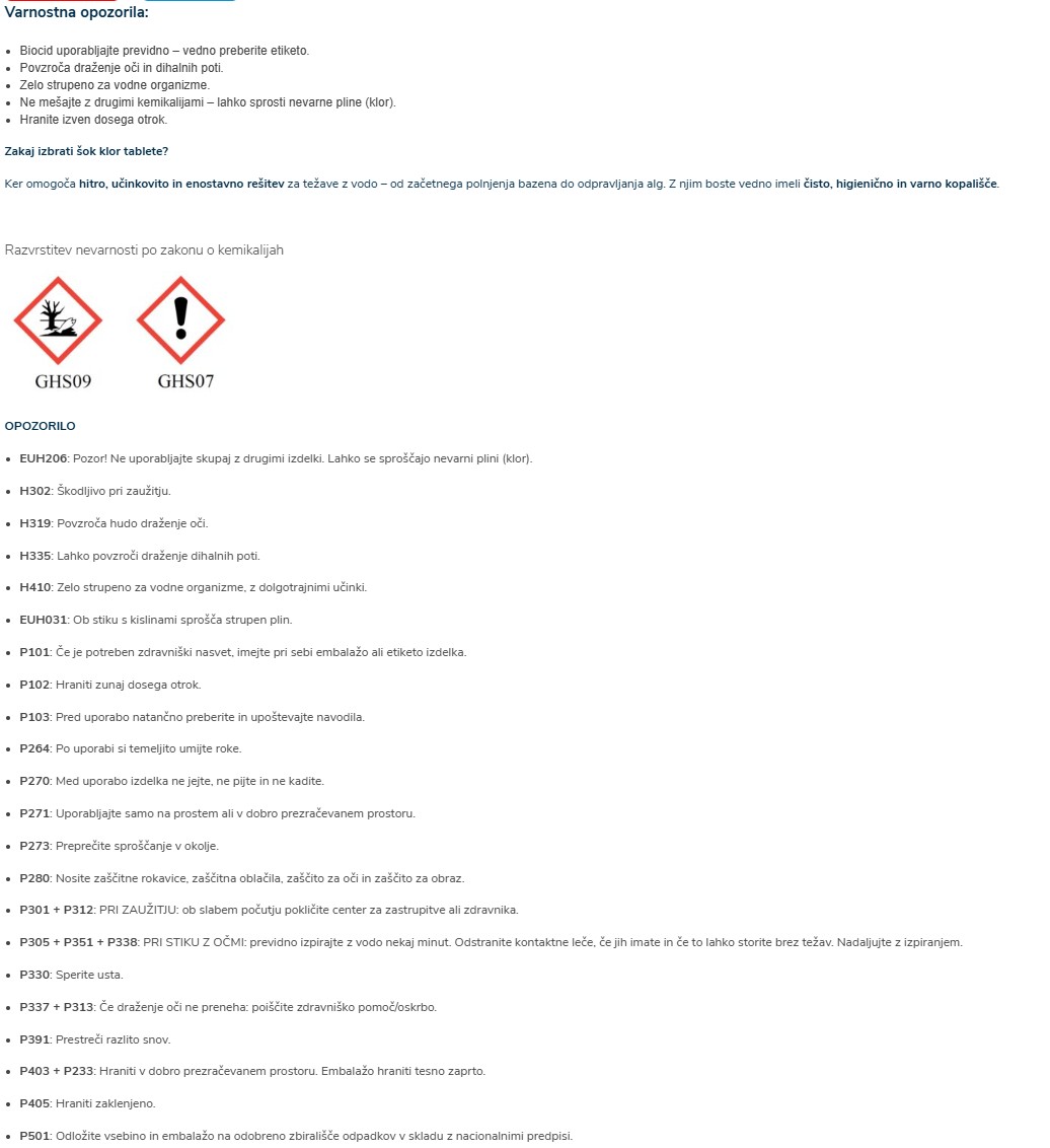 Desjoyaux hitro topne šok klor tablete 20 g, 5 KG