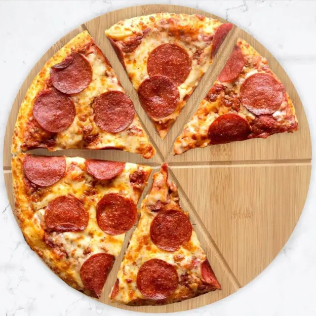 Okrogla vrtajoča deska je izdelana iz bambusovega lesa in je idealna za vsestransko uporabo v kuhinji. Premer 35 cm ponuja dovolj prostora za rezanje in serviranje različnih jedi. Zahvaljujoč vtorom je še posebej primerna za popolno razrezovanje pice na enakomerne kose, hkrati pa je odlična tudi za rezanje in postrežbo sirov, narezkov ali drugih prigrizkov. Bambusov les ni le trpežen in okolju prijazen, temveč daje deski tudi naraven in topel videz, ki bo obogatil vsak obrok ali družabno srečanje. Naj bo to večerja s pico, gurmanski krožnik sirov ali priložnost za prigrizke, ta bambusova deska združuje funkcionalnost in estetsko privlačnost za vsako priložnost.