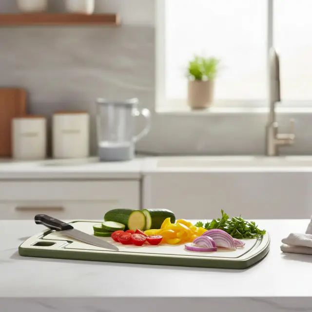Pravokotna deska iz polipropilena (PP) je praktična in vsestranska izbira za vsakodnevno pripravo hrane. Zaradi čvrstega materiala je odporna na udarce in primerna za rezanje različnih živil. Na voljo je z različnimi barvnimi poudarki, ki poudarjajo živahen in moderen videz kuhinji. Deska ima priročno odprtino za enostavno prenašanje in shranjevanje, poleg tega pa je primerna za pomivanje v pomivalnem stroju, kar olajša čiščenje in vzdrževanje.