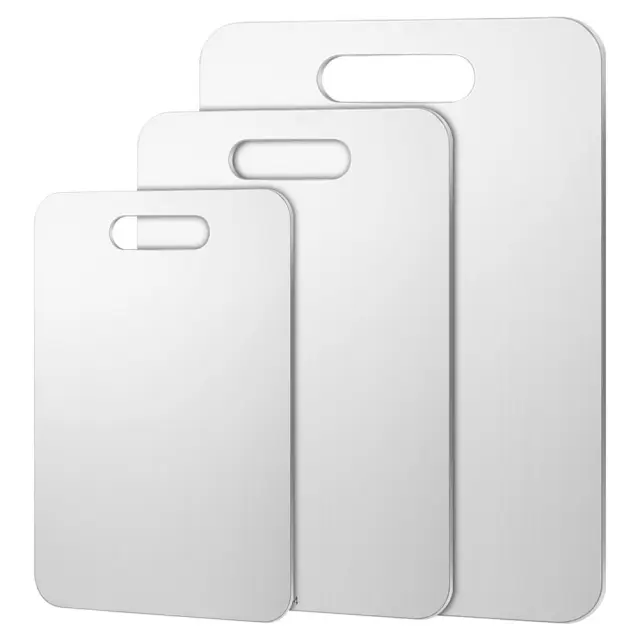 Premium in dolgotrajen: izdelan iz debelega, robustnega nerjavečega jekla. Ta deska za rezanje je izdelana tako, da prenese pogosto uporabo in se upira zvijanju ali pokanju. Je zanesljiv pripomoček, ki bo služil še vrsto let.