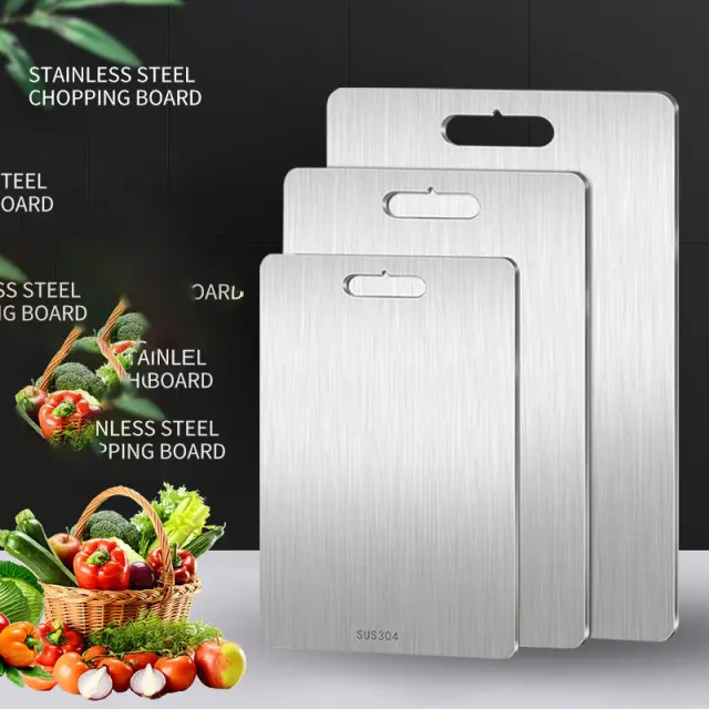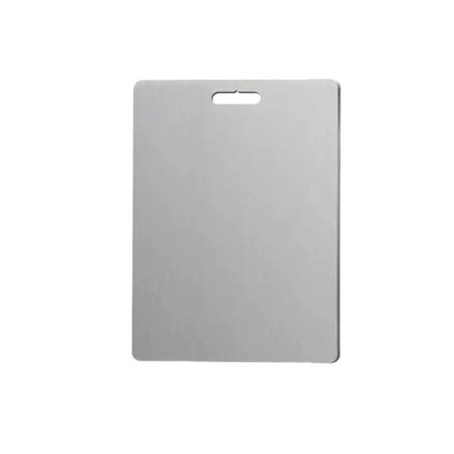 Higienična in enostavna za čiščenje: ta deska za rezanje je izdelana iz visokokakovostnega nerjavečega jekla 304 in je naravno odporna na bakterije in vonjave. Njegova gladka, neporozna površina preprečuje, da bi se delci hrane ujeli, zaradi česar je čiščenje in razkuževanje izjemno enostavno.
