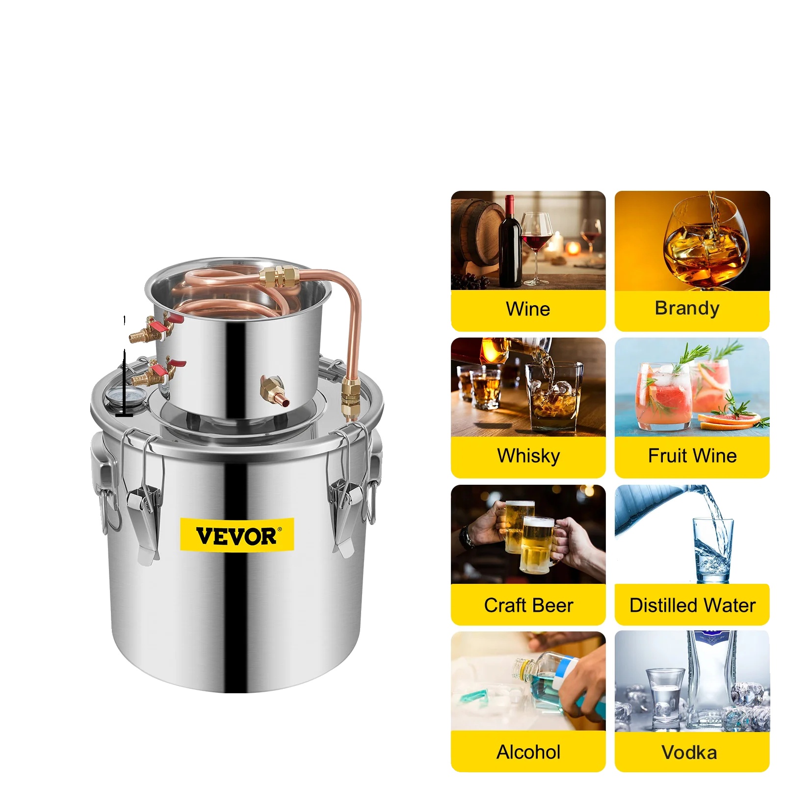 • Trajna konstrukcija: Izdelan iz hrane primernega nerjavečega jekla in rdečega bakra, je ta destilacijski komplet zasnovan za dolgo življenjsko dobo, kar zagotavlja varnost in zanesljivost med vašimi destilacijskimi procesi.