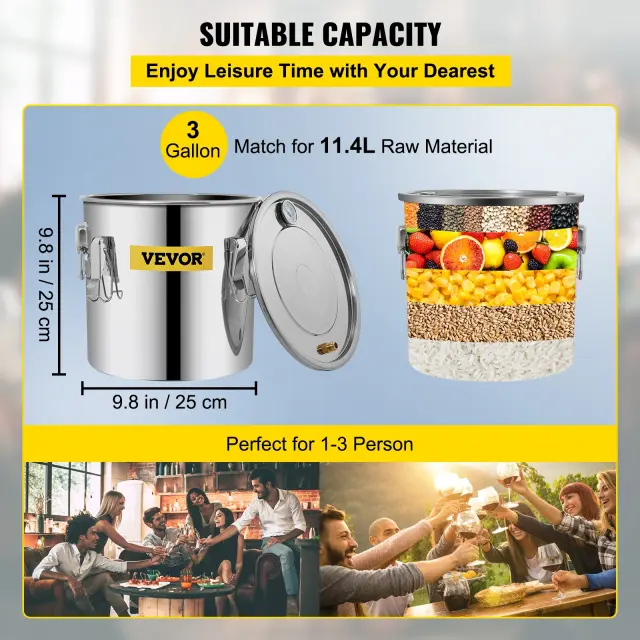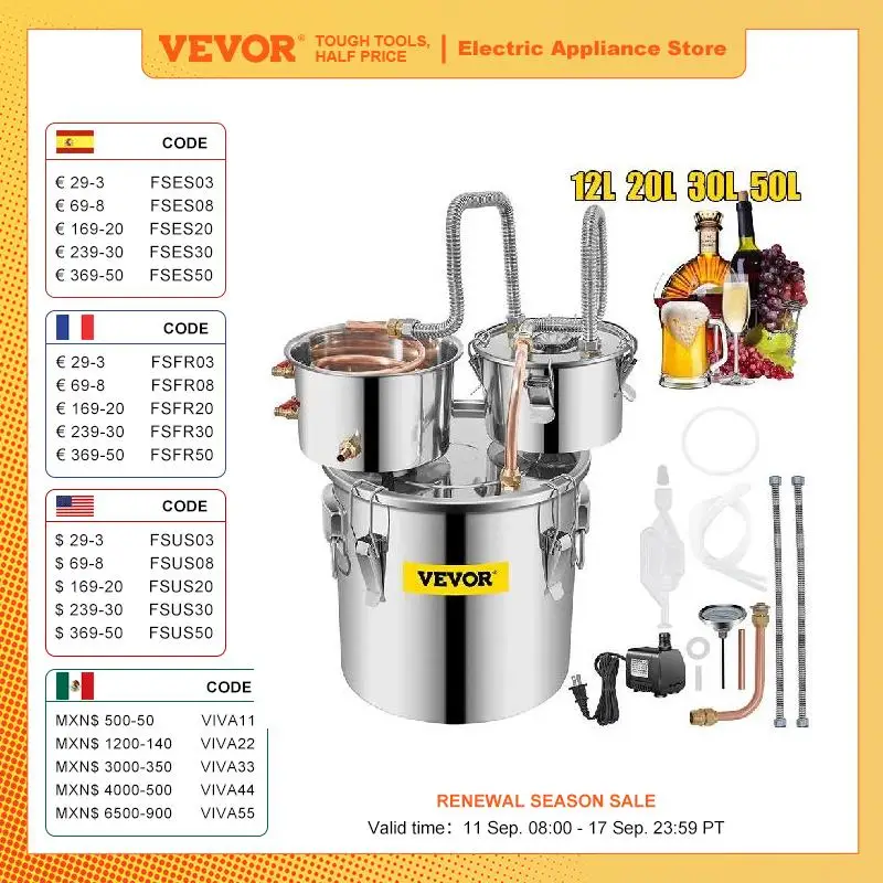 • Obsežna kapaciteta: Z možnostmi, ki segajo od 3 do 13 galonov, ta komplet destilatorja alkohola lahko obdeluje do 4 litre surovih materialov za razlicne potrebe destilacije.