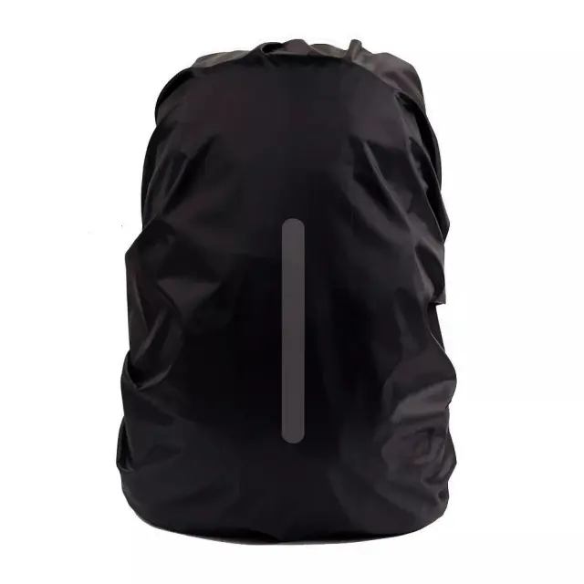 Ta dežna prevleka za nahrbtnik je izdelana iz nepremočljive tkanine Oxford, ki učinkovito ščiti vaš nahrbtnik pred umazanijo, peskom, vodo in snegom. Odsevni trak zagotavlja dodatno varnost, ko je zunaj temno.