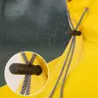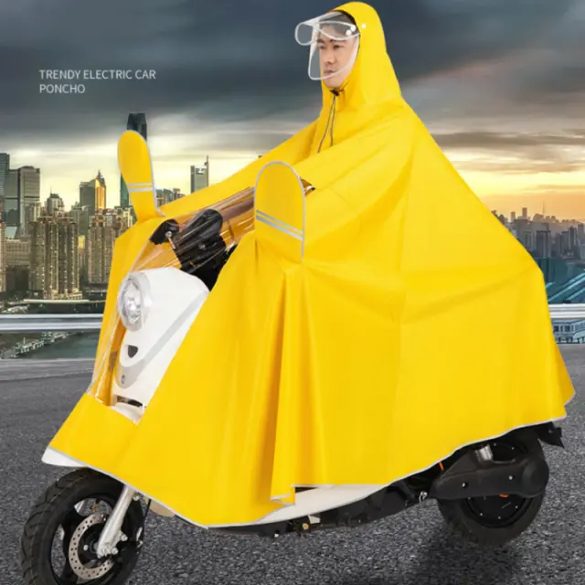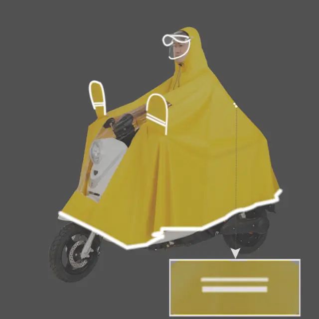 Dežni plašč je izdelan iz 100% nepremočljivega materiala in je ultralahek. Odsevni rob poskrbi za varnejšo vožnjo ponoči. Kapuca ima vrvico za tesno prileganje in maksimalno zaščito pred dežjem. Sprednja prozorna površina omogoča preglednost instrumentne plošče in zagotavlja, da luči ostanejo vidne.