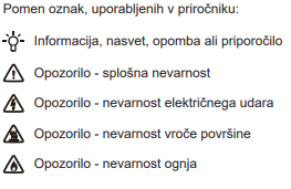 Slike o varnosti izdelka vsebujejo opozorila na embalaži izdelka in lahko vključujejo ključne varnostne informacije, povezane z določenim izdelkom.