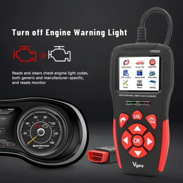 6. Vgate VR800 OBD Scanner with new functions like battery status display, DTC Help, graphic live data, all OBD-II protocols, and supports all 10 OBD-II test modes.