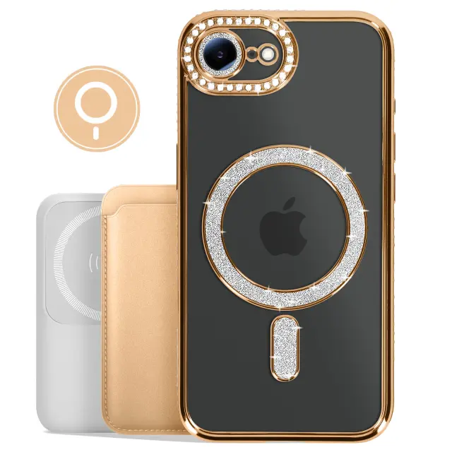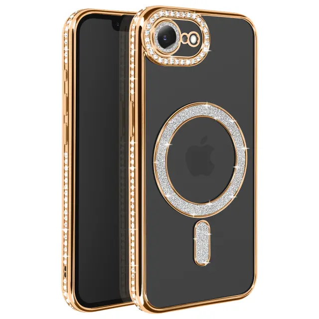 Diamantni ovitek za iPhone 16e MagSafe Obris Strass, Zlata
