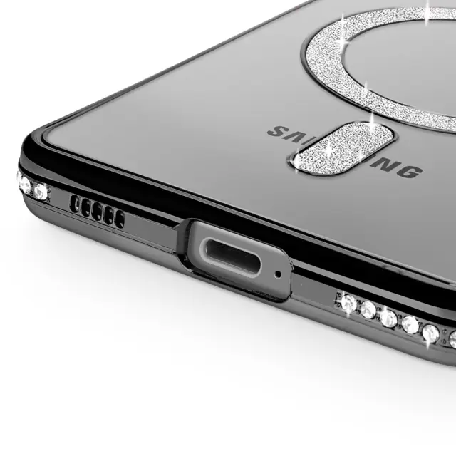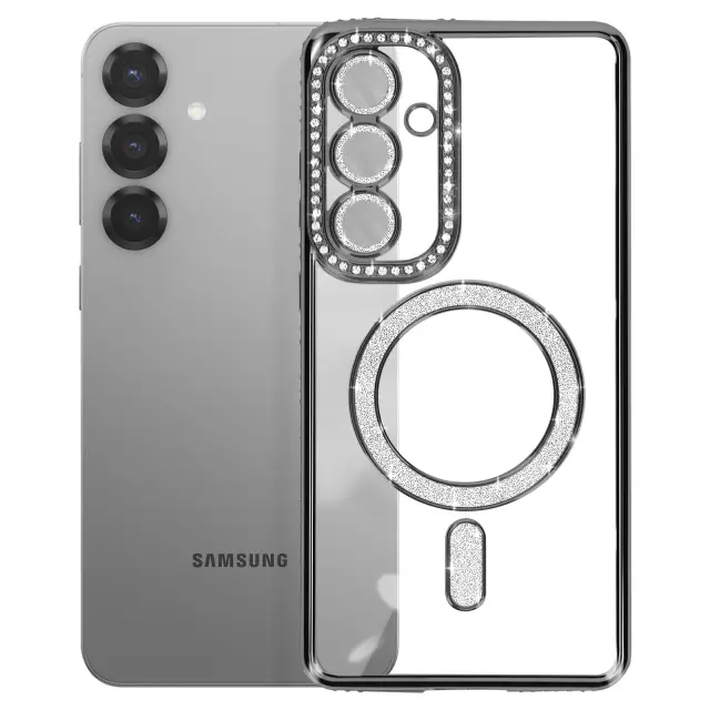 Diamantni ovitek za Samsung Galaxy S25 MagSafe Obris Strass, Črna