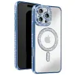Svetlomodra diamantna lupina s kristali, ki vaši [ime naprave] daje razkošen in eleganten videz. Zaradi prozorne hrbtne strani je originalna barva vašega iPhona popolnoma vidna, kar zagotavlja edinstven videz. Vgrajen magnetni obroč je popolnoma združljiv z dodatki MagSafe: držali za kartice, stojali, polnilniki itd.. Robusten, trpežen material, ki vaš iPhone varuje pred vsakodnevnimi nevarnostmi.