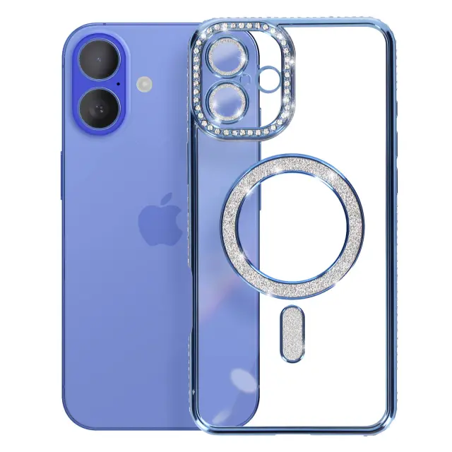 Diamantno ohišje MagSafe za iPhone 16 Plus z luksuznim dizajnom, Svetlo modra