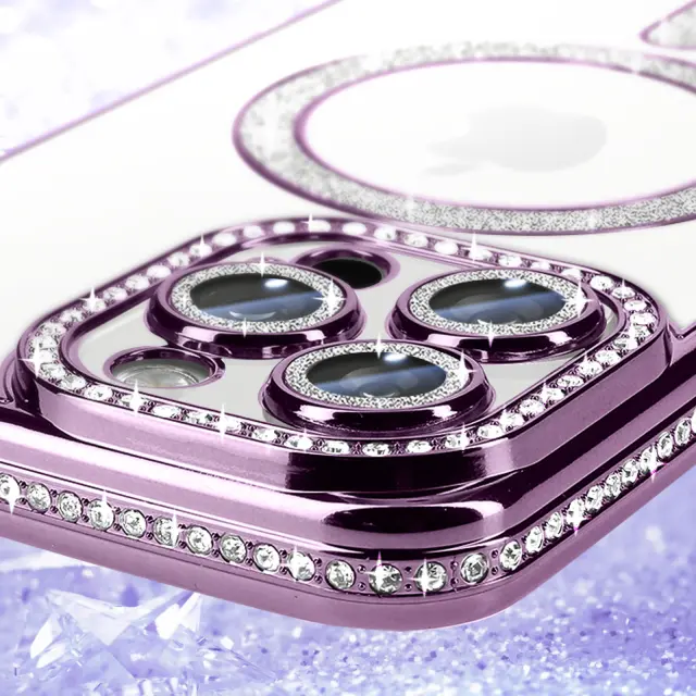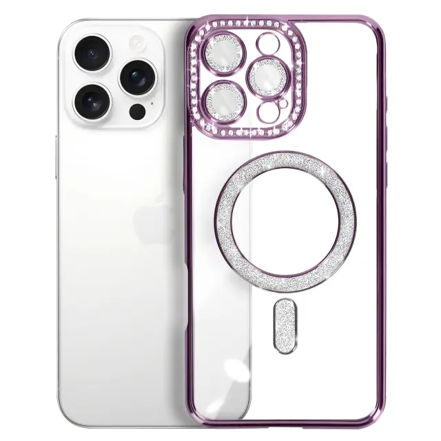 To ohišje je združljivo z dodatki MagSafe. Svetla diamantna oblika s kromiranim zaključkom. Trdna polikarbonatna lupina za dobro odpornost. Dvignjeni robovi za zaščito zaslona in kamere.