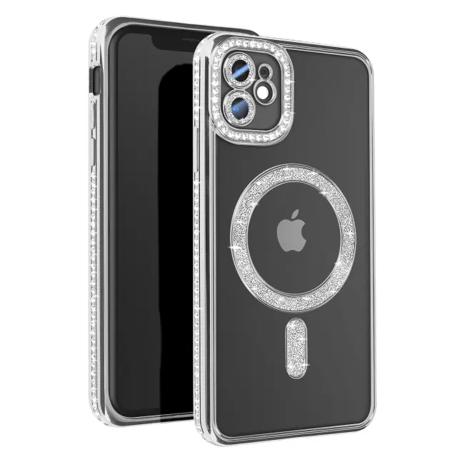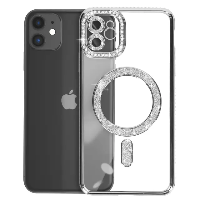 Diamantno ohišje za iPhone 11 Zaščita MagSafe Contour Strass, Srebrna