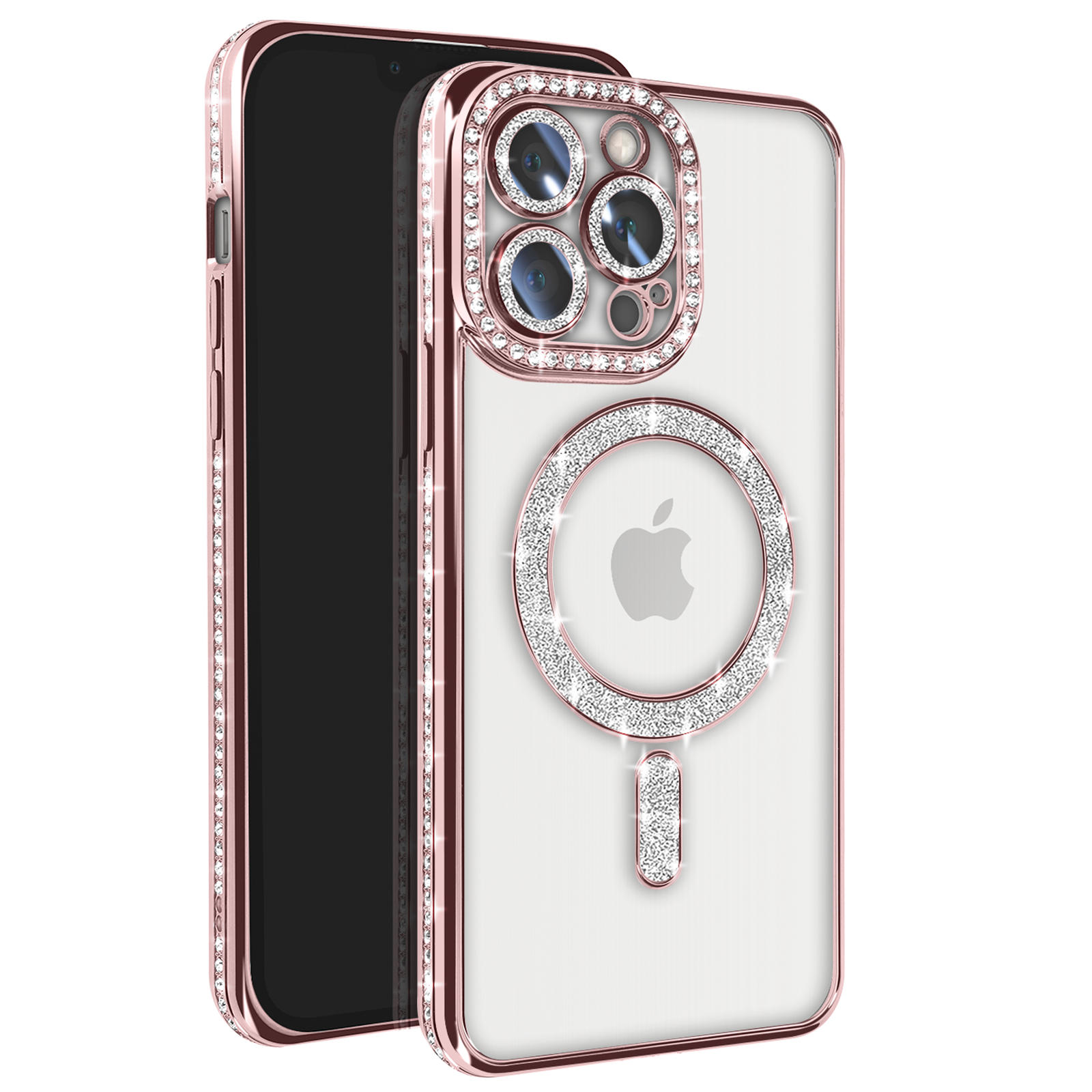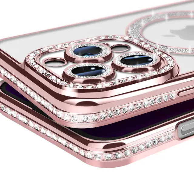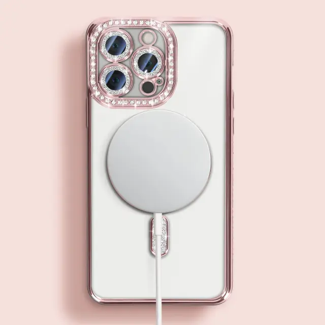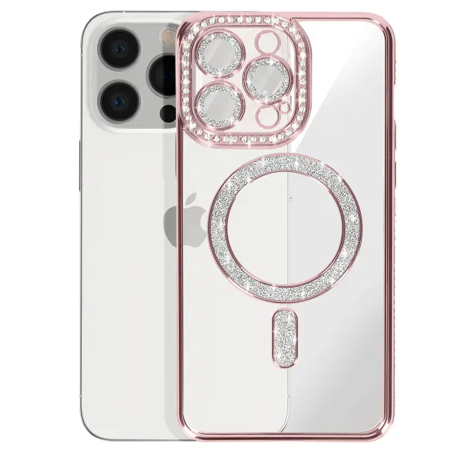 Diamantno ohišje za iPhone 13 Pro MagSafe Obris Strass, Roza