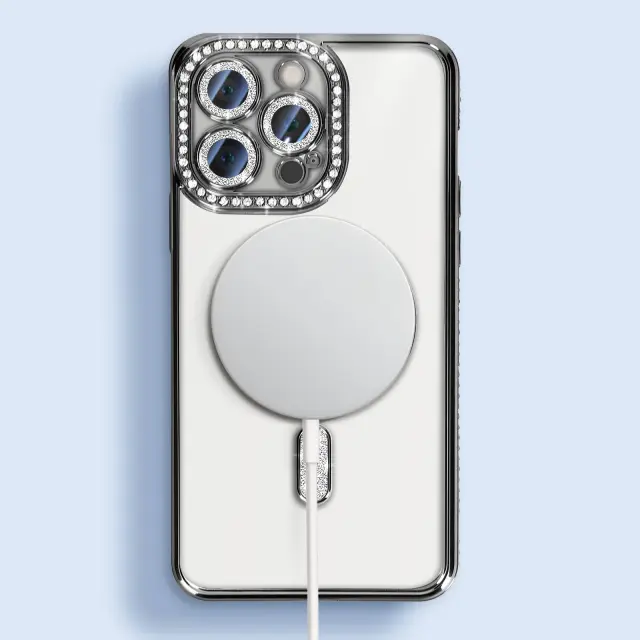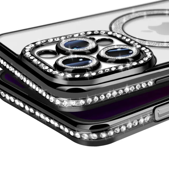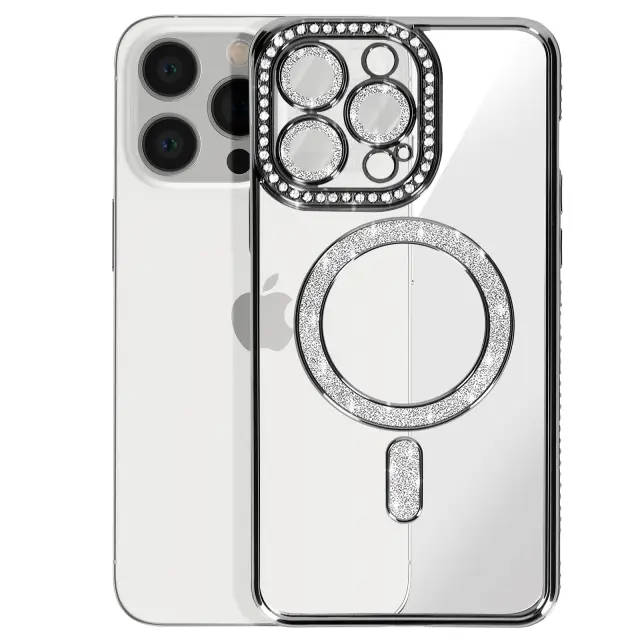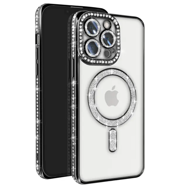 Diamantno ohišje za iPhone 13 Pro MagSafe Obris Strass, Črna